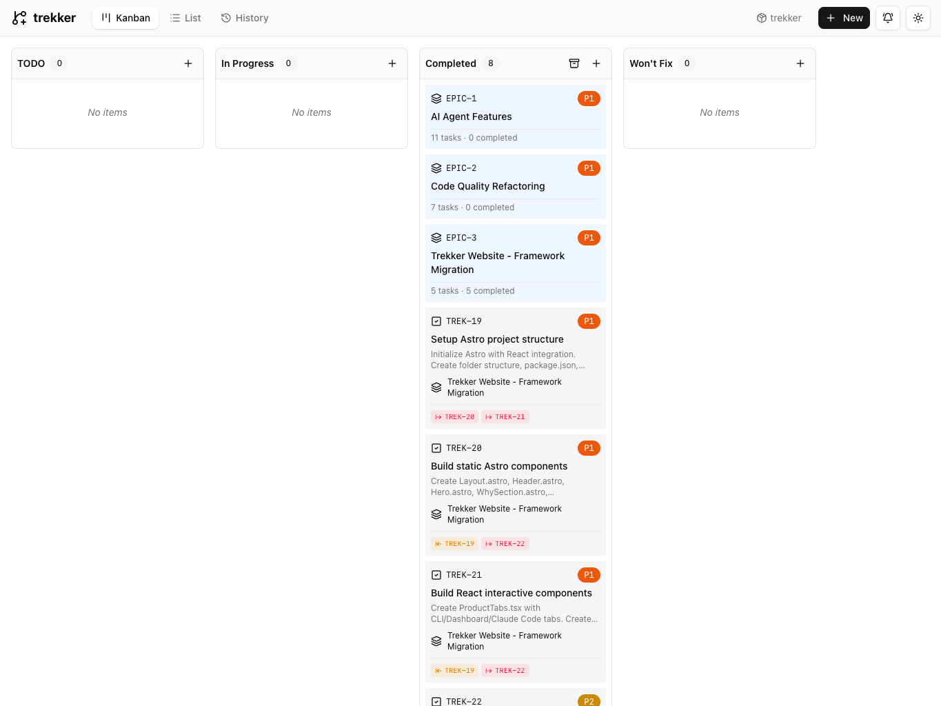 trekker --toon task listtrekker --toon task show TREK-1Dashboard